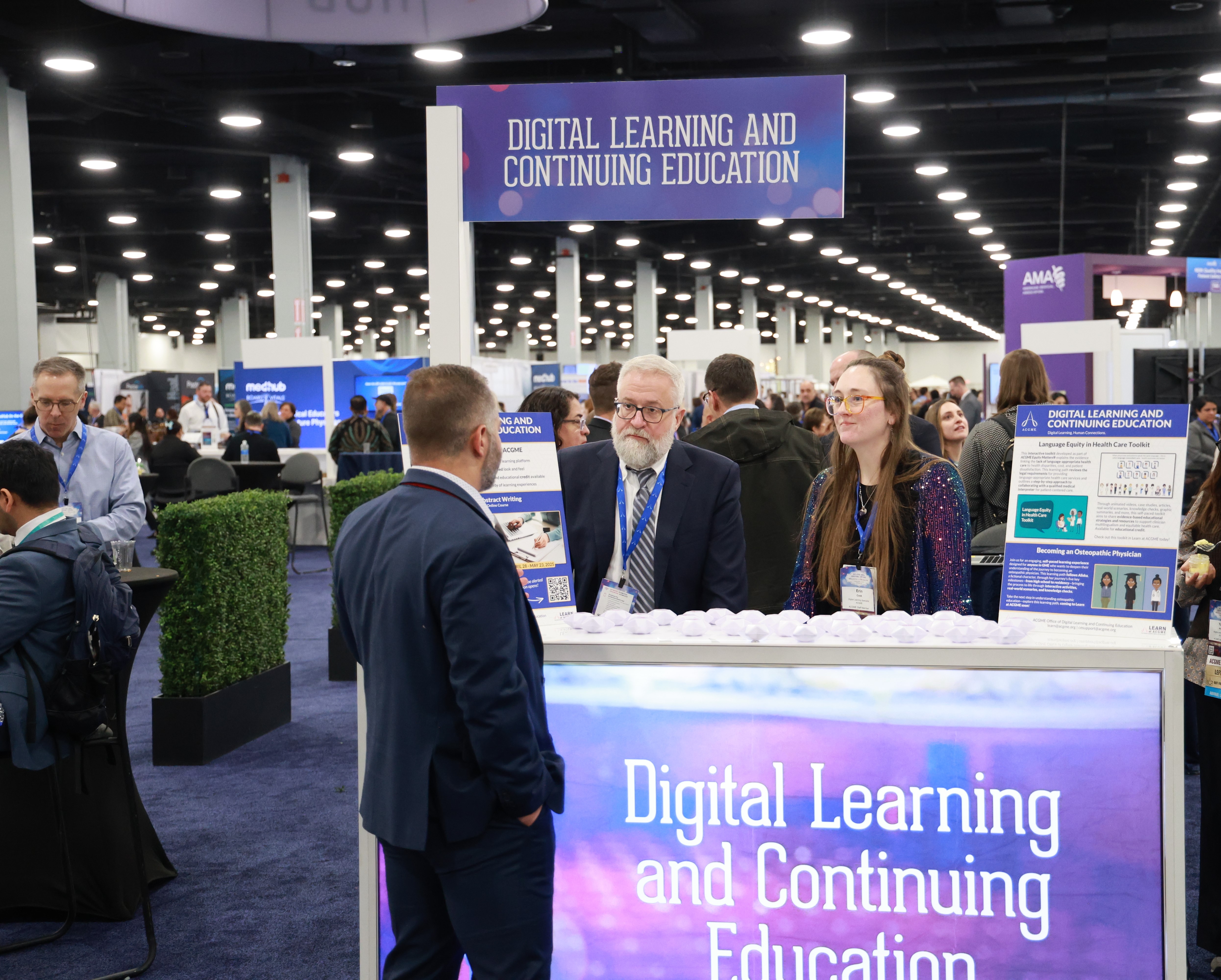 Each kiosk is staffed by knowledgeable team members ready to answer questions, share updates, and help attendees navigate the many facets of graduate medical education.